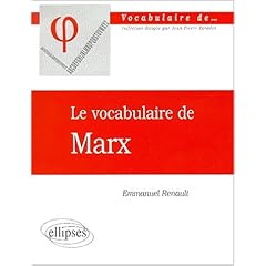 Dans ce Vocabulaire, Emmanuel Renault aborde les termes mêmes dans lesquels Marx élabore ses idées, ainsi que les innovations, les hésitations et les difficultés inscrites dans un certain nombre de concepts centraux. La pensée marxienne apparaît ainsi sous son propre jour, celui d'une entreprise critique soucieuse de rapporter la lutte contre la société bourgeoise à ses fondements théoriques, d'une polémique prise dans le mouvement de l'histoire et des luttes politiques, indifférente aux systématisations factices et profondément étrangère à tout dogmatisme.